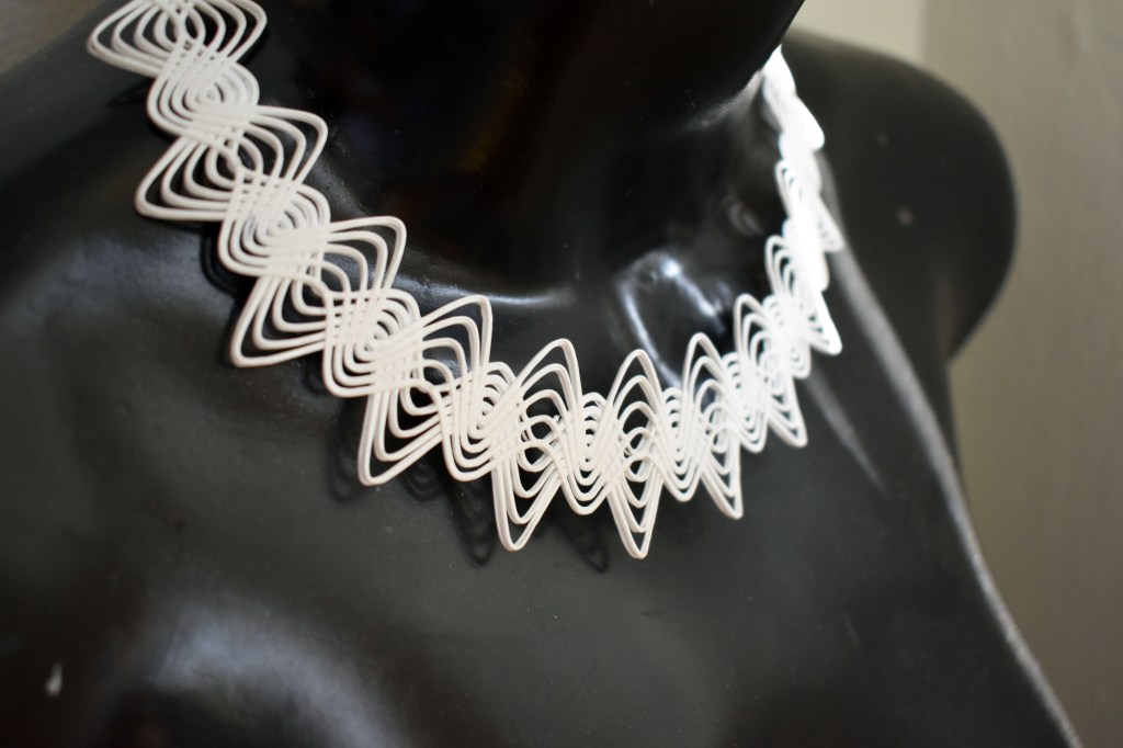 Posted on May 18, 2020 by burcinnalinciLAMDA NECK PIECE Inspired by the geometric representation of a sine wave, this necklace is 3D printed with PLA. Share this: Click to share on X (Opens in new window) X Click to share on Facebook (Opens in new window) Facebook Like Loading... Related